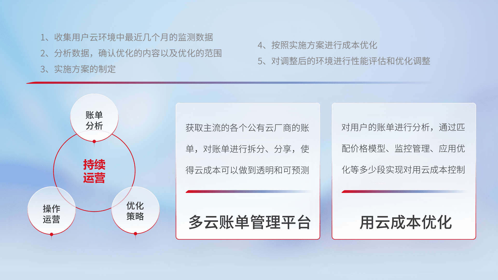 运用智能化工具分析云资源,,,,提供日常费用可视化工具,,自动账单拆分,,成本优化云上费用,,,降本增效。。